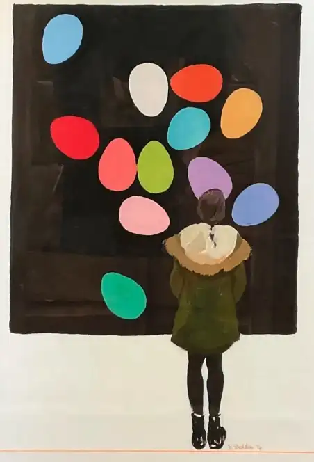 photo of mixed-media art from Eileen Clark Exhibit at the library